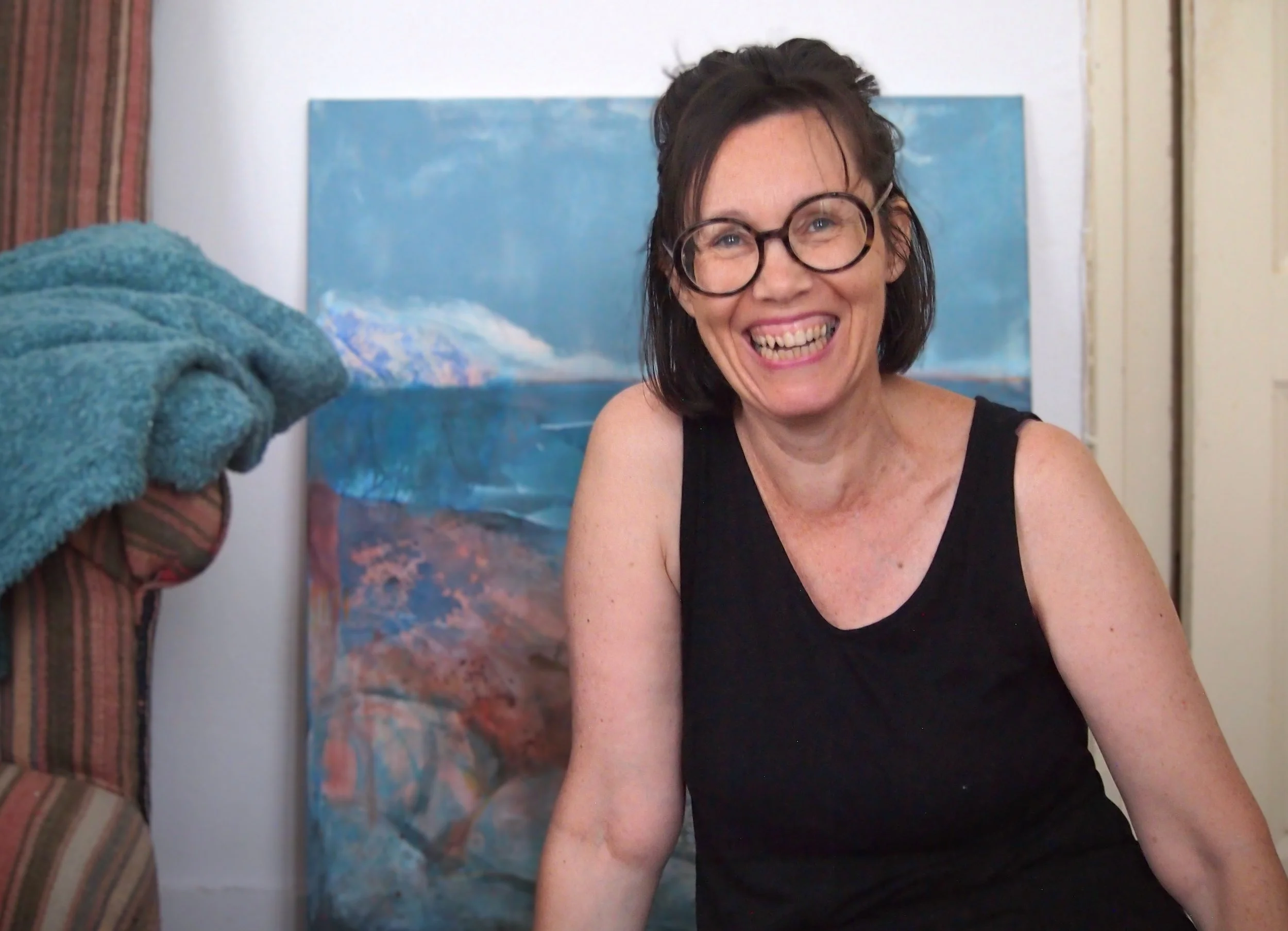 Je peins à l’aquarelle ou à l’acrylique, sur papier ou toile. J’ajoute des traits de crayons, des pastels, ou je colle des papiers gravés. Ces strates — pigments, textures, collages — faisant de chaque tableau un espace de mémoire, une exploration sensible de ce qui nous relie à une terre, une culture, un passé.