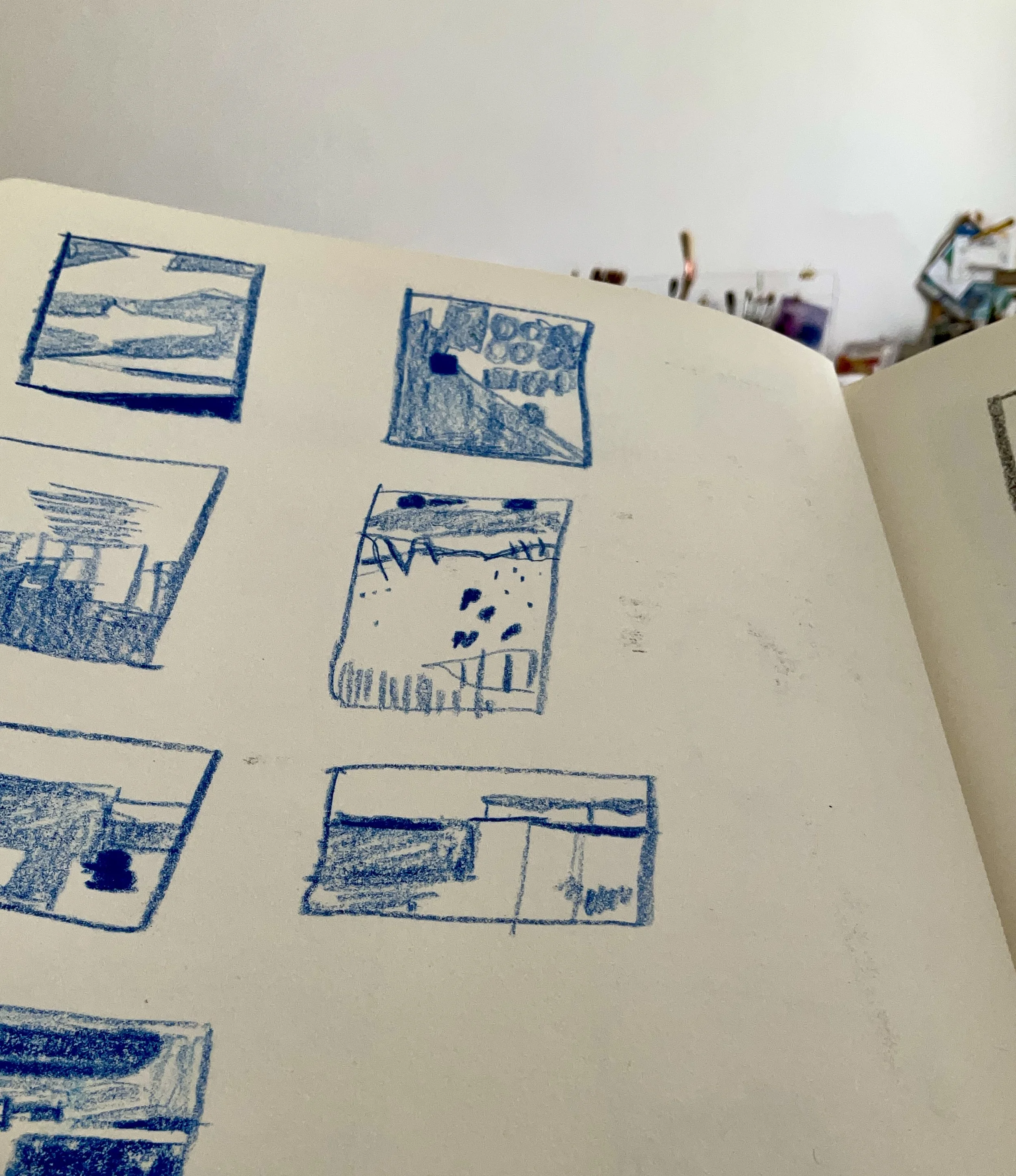 En notant mes idées quotidiennement je me crée une banque d’inspiration. Le jour où je bloque sur un dessin, une forme ou pour remettre une idée en place il me suffit de relire le carnet pour trouver une idée oubliée.